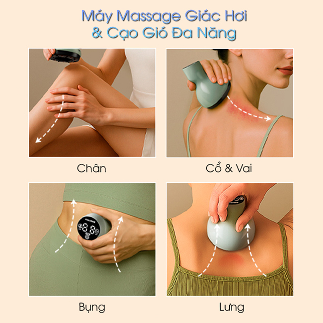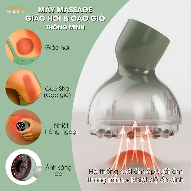 Máy massage giác hơi và cạo gió thông minh mang đến giải pháp chăm sóc sức khỏe toàn diện, kết hợp hài hòa giữa trị liệu truyền thống và công nghệ hiện đại.